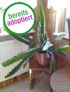 „Communicate“ trägt gern wunderschöne Blüten und experimentiert seit Jahren mit nonverbalen Formen der Kommunikation. In jüngster Zeit konzentriert er sich auf Zeichensprache und studiert gerade das Winkeralphabet. Er ist 70 – 90 cm breit und 65 – 70 cm hoch. Der Topf hat einen Durchmesser von 30 cm.