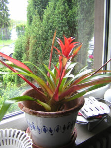 Elfriede verdingte sich schreibender Weise in Österreich. Nach einigen Literaturpreisen wurde ihr der Medienrummel um ihre Person etwas lästig, so das sie als blinder Passagier mit einer Lieferung von Zimmerpflanzen über die Grenze nach Deutschland kam. Weil sie nicht blühte, wurde sie dort sofort vor die Tür gestellt. Ein zufällig vorbeifahrender Trucker nahm sich ihrer an und brachte sie in die Pflanzenklappe nach Schöppingen. Hier wurde sie sofort adoptiert.