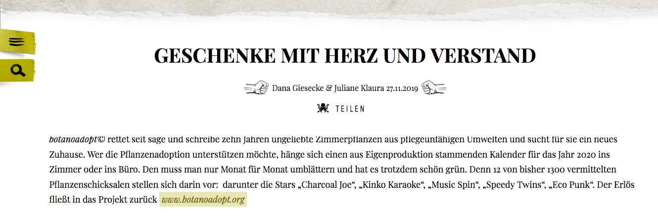 Der botanoadopt Kalender kann auch vor Ort gekauft werden
