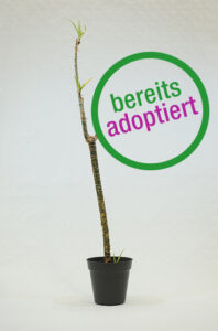 Die schwerst traumatisierte Dracaena ist die letzte von drei übergossenen Hydrokulturpflanzen. Dank ihres starken Überlebenswillen und ihres Vertrauens, schaffte sie es zu überleben. Ihr Glück war die Pflanzenklappe in Sittard (NL), in der sie abgegeben wurde. Nun sucht sie ein neues Heim, das sie mit dem ihr inne wohnenden Prinzip Hoffnung bereichern kann. Natürlich benötigt sie auch etwas Zuwendung und Pflege. „Three Signs of Hope“ ist ca. 1,30 Meter hoch.