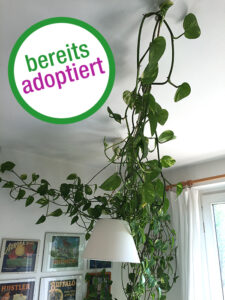„Douala Camerouna“ wurde vor 32 Jahren als Steckling im Schraubglas aus Kamerun eingeflogen und sucht nun erneut Asyl. Sie ist eine Efeutute (Scindapsus) und lebt in einem großen Plastiktopf mit Selbstbewässerung. Man kann die langen Triebe einzeln aufrollen, in große Tüten verpacken und so problemlos in jedem Kofferraum transportieren. „Doula“ verträgt alles außer Frost und Dürre und kann beliebig gekürzt werden. Sie ist äußerst gesellig und hört gern die Songs von Renise.