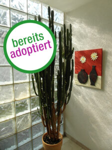 Als Pflanzenmodel wollte sie arbeiten; doch sie scheiterte kläglich an den obligatorischen High Heels. Dann besann sie sich darauf, das das Leben schön ist und wuchs einfach vor sich hin – in voller Schönheit auf mittlerweile 2,45 Meter. Mit ihren fünf Jahren hat sie noch einiges vor sich und sucht ein helles liebevolles Heim.
